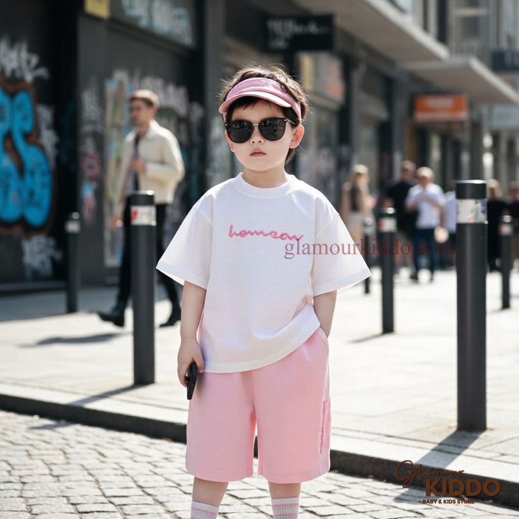 Dress your little one in style with this adorable and trendy kids' outfit. This set includes a comfortable t-shirt and matching shorts, perfect for everyday wear or special occasions. The t-shirt features a classic crew neck and short sleeves, providing a relaxed and easy fit. The shorts are designed with an elastic waistband for added comfort and convenience. Made from high-quality materials, this outfit is soft, breathable, and gentle on your child's skin.